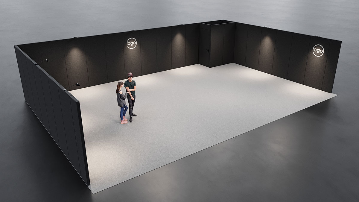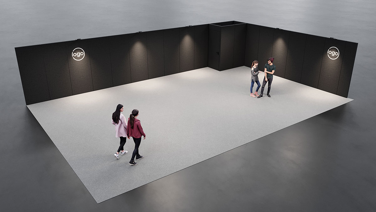 - Back walls made of fabric-covered elements (height: 2.5 m); fabric available at no extra charge in the following colors: anthracite, light gray, beige (see illustrations)