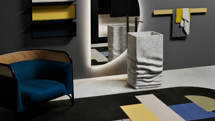 Given that private bathrooms are increasingly evolving into home spas and oases of well-being , why not rethink bathroom design completely? Designer bathroom furniture made in Italy offers the required comfort and a touch of luxury. Classic materials such as white marble meet novel shapes that seem at first to have little in common with bathroom furniture as we know it. Take Mario Ferrarini’s , for instance, which appears to have been inspired by a porcelain dish. It does not have a privileged side, provides ample space and appears lightweight and delicate thanks to its smooth, narrow walls.
